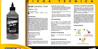 Symplex® Ceramic Trim, Tratamiento profesional de cuarzo a base de agua para todos los acabados de plástico interior y exterior. Brillo OEM satinado original seco al tacto, no pegajoso. Proporciona una protección duradera hidrofobica mientra que mantiene un aspecto OEM similar al nuevo. Contiene la última tecnología silice SIO2. Silex Ceramic Trim proporciona la durabilidad y la dureza del vidrio en una formula cremosa de fácil aplicación.! Duración de 3 a 6 meses¡